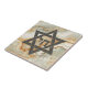 Die rustikale Keramik-Kachel hat einen Stern von David mit dem hebräischen Wort "chai", was "life" bedeutet. Die Metal-, Gold- und Marmorsteineffekte werden digital erstellt. Der atemberaubende Untersetzer oder Trivet fügt eine elegante Touch als dekoratives Display in jedem Raum hinzu.