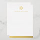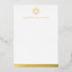 Flat, leere Schreibwarennotecards mit einer einfachen echten Folie Star of David mit dem unten stehenden Namen in einem männlichen Schriftart. Unten ist ein echter Folienabrand. Wählen Sie zwischen goldfarbener, goldfarbener und silberfarbener Rose.
