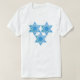 Weißer T - Shirt für einen Mann mit drei Sternen von David in blau, grün und weiß.