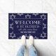 Stilvoll, Star of David WELCOME Door Mat mit dem Wortlaut WELCOME & BE BLESSED ALLE, DIE HIER EINGREIFEN (AUSSER TRESPASSERS). Der Hintergrund ist ein Imitat silberner Star von David vor einem Mitternachtsblauen Hintergrund. Der gesamte Text ist KUNDENBAR, sodass Sie den Text so ändern können, dass er Ihren Bedürfnissen entspricht, z.B. Familienname, Familienmotto, inspirierendes Zitat hinzufügen. Großartiges Geschenk für Hanukkah.