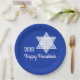 Hanukkah Themenpapierteller. Blauer Hintergrund mit einem schönen Kristall Star of David Ornament in der oberen Ecke. Die Wörter "20XX" und "Happy Hanukkah" werden in festlichem Schriftart darunter geschrieben. Sie sollten den "XX" in jedes gewollt Jahr ändern. Die Größe ist optional. Obwohl dies eine große Platte anzeigt, können Sie sie durch die kleinere Größe ersetzen.