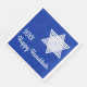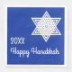 Hanukkah thematisierte Papierserviette. Blauer Hintergrund mit einem schönen Kristall Star of David Ornament in der oberen Ecke. Die Wörter "20XX" und "Happy Hanukkah" werden in festlichem Schriftart darunter geschrieben. Das "XX" sollte in jedes gewollt Jahr geändert werden. Die Größe ist optional, auch wenn eine große Serviette vorhanden ist, kann man sie gegen einen Cocktail oder ein Mittagessen eintauschen.