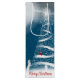 Weißer Weihnachtsbaum auf blau mit leuchtendem Vollmond, niedlicher Hase und rotem Kardinal. Schneeflocke-Overlay Text kann bearbeitet oder gelöscht werden.