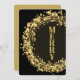 Gold Kreise, Sterne und Punkte auf einem schwarzen Hintergrund umgeben das Wort "MERRY" auf der Vorderseite und Ihre Namen und Gruß auf der Rückseite. Wählen Sie Matte für schwerstes Papier und High Definition für beste Druckqualität.