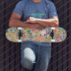 Ein funky Muster mit Sternen und Blumen in einer abstrakten Maische.