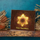 Ein heller, feuerähnlicher Fraktal Star of David auf rötlichem Hintergrund. Fügen Sie Ihren eigenen Text hinzu. Im Schema, dem zentralen Gebet des Judentums, sagen wir: "Und du wirst den Herrn, deinen Gott, mit deinem ganzen Herzen und mit deinem ganzen Soul und mit all deiner Macht Liebe geben." Möge solch eine Ewigkeit (Vertrauen oder Glauben) wie Feuer in deinem Herzen brennen.
