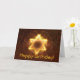 Ein heller, feuerähnlicher Fraktal Star of David auf rötlichem Hintergrund. Es erscheint auch Text mit dem Titel "Happy Birthday!".