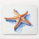 An illustration of an orange starfish on its blue silhouette. Watercolor drawing.