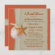 Hübscher Starfish und das Aussehen eines Kraters über einer hellen Korallenfarbe auf dieser Dusche mit einem Thema für den Strand. Ändern Sie den Text für jeden Anlass. Diese Einladung ist komplett gedruckt. Es gibt keine echten Seesterne, Sanddollars oder Lappen.