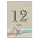 Rustikale Schnürsenkel mit Aqua- und Pfirsichbänder und sternenbedrucktes Design, Tischnummer-Karte zum Kompliment unseres Beachthema Set, kann personalisiert und individuell bestellt werden. Gedrucktes Design, kein richtiges Brennen, Spitze oder Band.