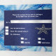 Diese elegante und stilvolle, preisgünstige Einladung hat ein mildes pastellfarbenes und mittelblaues Seesternmuster mit dunkelblauen Inlays, auf denen weiße Vorlagen für Ihre personalisierte Formulierung erscheinen. Der mittlere Bereich hat ein Imitat silberne quadratische Rahmen mit einer Vorlage für ein farbiges Foto des Brautpaares. Dieses einzigartige und tres schicke Design ist ideal für unter dem Meer; Korallenriff, tropische Insel, Küste Ziel und nautische Thema Hochzeiten.