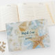 Beach Vacation Rental Starfish Themed Gästebuch. Personalisieren Sie dieses Beach House, Bed & Breakfast oder Ferien Rental Property Guest Book und machen Sie es einzigartig. Artwork ist ein wunderschöner Seesterne-Druck an der Küste mit einem großen realistischen Seestern und einigen anderen, in Weiß auf hellblauem Hintergrund überdruckt. Einfach anzupassen. Design von Jenn's Emporium.