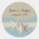 Starfish & Burlap Ocean Sky Blue Runder Aufkleber