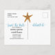 Fügen Sie Ihrem besonderen Event ein bisschen vom Strand hinzu, mit dieser Save the Date Postcard, die einen wunderschönen Seesternausdruck an der Küste mit realistischen Seestern hat, und einigen anderen, die auf hellblauem Hintergrund in Weiß überdruckt sind. Suchen Sie nach anderen Produkten, die in meiner Coastal Starfish Collection gefunden wurden. Design von Jenn's Emporium. Bitte kontaktieren Sie mich direkt, wenn Sie Hilfe benötigen.