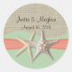 Starfish und Burap sehen Aufkleber in Muschel Korallen. Ändern Sie Text in Anzug Ihrer Bedürfnisse. Entspricht unserem Hochzeitsdesign "Beach Amore Starfish", Einladungen.