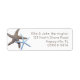 Weiße Rücksendeadressen-Aufkleber mit zwei Seestern und bedrucktem, braunem Text. Die Beschriftungen der Skinny-Etiketten enthalten bis zu vier Zeilen benutzerdefinierten Textes. Ein braunes und blaues Sternenpaar schmücken den Rand.