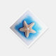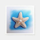 An illustration of an orange starfish with a blue sketch background. Crayon drawing.