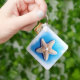 Eine Abbildung eines orangefarbenen Sternenfisches mit blauem Hintergrund. Der Seestern sieht aus, als wäre er in dieser Abbildung im Wasser. Es kann eine gute Illustration sein, um auf Ihrem Schlüsselanhänger zu verwenden, besonders wenn Sie die Abbildung auch mögen!