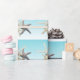 Drei Seesterne auf blau, beachte Packpapier zum Geburtstag oder zur Hochzeit. Bestellen Sie jede Art und Größe der Geschenkverpackung.