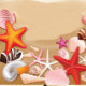 Eine lebendige Anordnung von Muscheln und Seestern auf einem Sandstrand.
