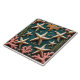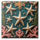 Vintage, geschnitzte Kachel mit einer Unterwasserszene aus Seestern, flankiert von Algen, rosa Korallen und mit einem goldenen Blumendekor auf einem dunkelgrünen Hintergrund.