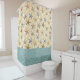Starfish im Sandduschvorhang. Farbenfrohe Seesterne in Rosa, Blau, Grün, Grau, Gelb und Braun. Das Stück wird von Sea Kies in Aquamarin Blue und Taupe geprägt. Meer, Küste, Wassersport, Strandhaus inspiriert Badezimmer Dekoration.