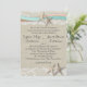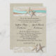 Rustikales Brünlchen und Spitzen mit Seestern, Aqua und Pfirsichbänken Einladung zur Hochzeit.