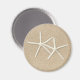Dieser sommerliche Strandmagnet ist mit zwei Seestern auf einem Sandboden dekoriert und macht es zu einer lustigen Dekoration am Strand oder im Seehaus.