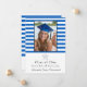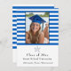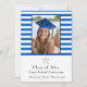 Eine moderne Ankündigung des nautischen Starfish Navy Blue und White Streifen Abschluss Ankündigung mit einem Rahmen über Ihre Wahl des Fotos. Die Rückseite bietet ein weiteres Foto und mehr Details über Ihren Absolvent.