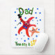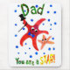 Ein Mousepad mit handgemalteter Papierkollektion, die einen tanzenden Seestern und ein junges Sprichwort mit Seestern, "Vater, Du bist ein Star!" Geeignet für den Vatertag oder zum Geburtstag eines Vaters. Siehe auch passende Grußkarte, Geschenke und Kleidung.