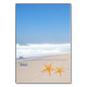 Eine frische Hochzeit am Strand mit gefalteter Escort-Platzkarte, die ein Seesternpaar an einem schönen Strand bietet. Wählen Sie es für Ihre lässige Hochzeit am Strand. Falte es in zwei Hälften.
