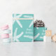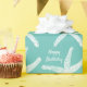 Gedruckt mit weißen Sternenmustern im aquamarinen Hintergrund mit Textvorlage für 'Happy Birthday'! Sie können den Text anpassen oder die Hintergrundfarbe ändern, wenn Sie möchten!