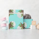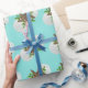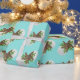 Weihnachtsdesign am Strand auf der hochwertigen Rolle der Geschenkverpackung. Starfish mit grünen heiligen Blätter und zwei Sand Dollar ist das Muster, das tropisches blaues Papier bedeckt.