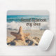 Personalisiertes Mousepad mit dem Foto eines Seesterns an einem Sandstrand, in dem Meereswellen einrollen. Anpassbarer Text sagt: "Sand zwischen meinen Zehen." Ideal für den Strandliebhaber oder für jemanden, der einfach nur will, sich zu entfernen.