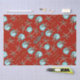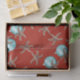 Rotes Weihnachtspapier mit Seestern und Ornamenten-Design. Braune Meeressterne und Aqua-blaue Ornamente machen ein lustiges tropisches Weihnachtsmuster und passen zu unserem Verpackungspapier.