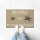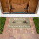 Ein Starfish entwerfen Fußmatte für das Sommerstrandhaus. Der Name auf dieser Matte kann personalisiert sein. Dieses Foto wurde von mir im Juli 2017 in Cayo Coco, Kuba genommen. Die Starfish werden während der Ebbe gerettet. Ich setzte sie zurück in das Wasser, nachdem ich dieses Foto genommen hatte.