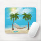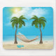 Hängematte zwischen zwei Palmen mit Seestern und Flip-Flops am Strand Sand mit Sommerwolken.