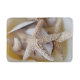 Cremeweiße Seesterne und Sand-Dollar-Badematte sind ein Schatz aus dem Meer. Das Badezimmer ist von Natur aus wunderschön gestaltet, um einen kleinen Teil des Strandes zu genießen. Dieses Bild ist eine originelle Seashell-Art-Fotografie von JLW_Fotografy