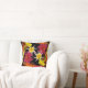 Dieses hübsche, dekorative Kissen mit einem farbenfrohen Design von Stargazer Dahlien in leuchtenden Farben wie Rosa, Gelb, Orange, Gold, Fuschia und Maron auf schwarzem Hintergrund. Sie werden Stargazer genannt, weil die Blätter im Gegensatz zu den traditionellen Dahlien eine spitze Sternform haben. Das Bild wird auf der Rückseite wiederholt.
