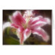 Dieses makro-Foto einer rosa-weiß gesprenkelten Sternenlilie ist zart und strahlend in der Sonne. Die Details dieser wunderschönen Blume sind in scharfem Fokus, denn der weiche Hintergrund lasse diesen dramatischen Blume-Kolben im Rampenlicht dieses eleganten Bildes.