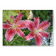 Hier ist ein hübsches Bild von Stargazer-Lilien in einem Garten. Man sieht einen hausgemachten Steppstein mit Glasstücken im Hintergrund. Karo in unserem Laden für farbenfrohe Fotos. Dieses Bild wird auch als Naturwallpaper "Stargazer Lilies" von www.mlewallpapers.com gezeigt.