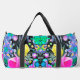 Diese Coolen, farbenfrohen, großen Duffle-Taschen sind mit einer Stargazer-Lily, Gelben Rose und Rosa-Hibiskus-Collage mit schwarzen, weißen, Lila, grünen und Magenta-Akzenten versehen. Das Ergebnis ist ein buntes, blumengeschmücktes, abstraktes Design, dass Sie Liebe!