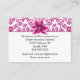 Hübsche Hochzeitsausweiskarte, mit einem violett rosa auf weißem, blumenfeuertem Muster, oben über und hinten, und einer schönen Sternenlilie, oben auf der Vorderseite. Der weiße Textbereich ist mit schwarzem Text versehen, der für Ihren besonderen Tag personalisiert werden kann. Matching Produkte sind erhältlich.