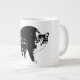 A bright-eyed tabby pauses mid-step, tail curved and curious. Morning sips feel a touch more seasonal for cat devotees.