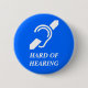 Internationales Symbol für das taube mit den Wörtern HART DER ANHÖRUNG unterhalb sie. Dieser Knopf regt Leute an, louder und offenbar zu sprechen.