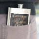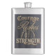 Das Design enthält den fett gedruckten Text "Courage Pushes Strength" in einem Regal, Serif Schriftart. Die Wörter werden in einer reichen Palette von tiefen, königlichen Farben dargestellt, die eine majestätische und mächtige Ästhetik erzeugen. Das Design ist auf einem soliden, hellblauen Hintergrund ausgerichtet und bietet eine saubere und moderne Leinwand für die Botschaft.