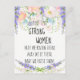 Die inspirierende "Hier sind die starken Frauen. Vielleicht kennen wir sie. Vielleicht sind wir sie. Wir können sie erheben." Zitat eingefasst in einem wunderschönen Aquarellblütenpinkerinnen und blauen, lila Delphinium- und Süßerbsen-Blumendesign. Schickt ein wenig Liebe und Ermutigung an jede Frau oder jedes Mädchen in eurem Leben. Feiern Sie den Internationalen Frauentag.