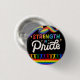 Eine reizende Taste, die eine abwechslungsreiche Gruppe von Individuen zeigt, die auf einem Regenbogen stehend sind, mit der Meldung "Stärke in Stolz" in regenbogenfarbenen Buchstaben. Ideal, um Ihren LGBTQ-Freunden zu schenken.