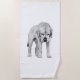 Dieses Handtuch trägt eine dramatische schwarz-weiße Darstellung eines Hundes in fester Haltung. Ein kühnes, grafisches Stück für Sonnen- und Wasserliebhaber, die die moderne Kunst schätzen.