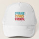 Das Design enthält den fett gedruckten Text "Courage Pushes Strength in einem dynamischen, graffit-style Schriftart. Die Welten werden in einer lebendigen, mehrfarbigen Palette dargestellt, die eine visuell auffällige und energetische Komposition schafft.